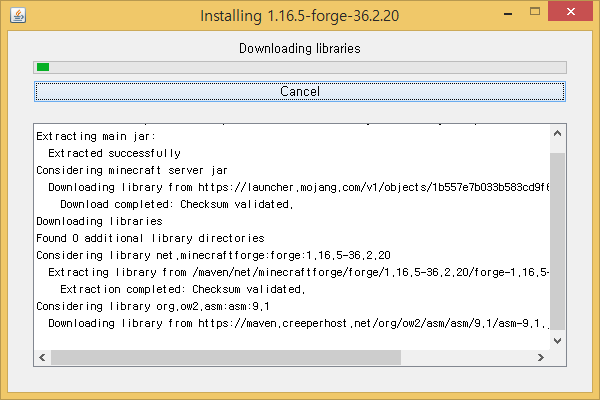 받은 파일을 압축 해제 후 forge-버전명-installer.jar라 된 파일을 실행시켜 줍시다.