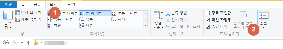 혹시 확장자가 뜨지 않는다면, 우선 폴더의 보기 탭에서 옵션항목을 들어가줍니다.
